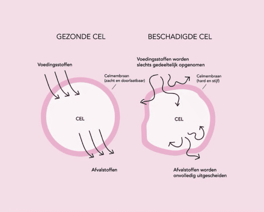 (veel) last van laaggradige ontstekingen. Wanneer je cellen beschadigd zijn, wordt de celmembraan hard en stug. Het gevolg: voedingsstoffen worden minder goed opgenomen, afvalstoffen worden niet goed afgevoerd en je gezondheid wordt beïnvloed.